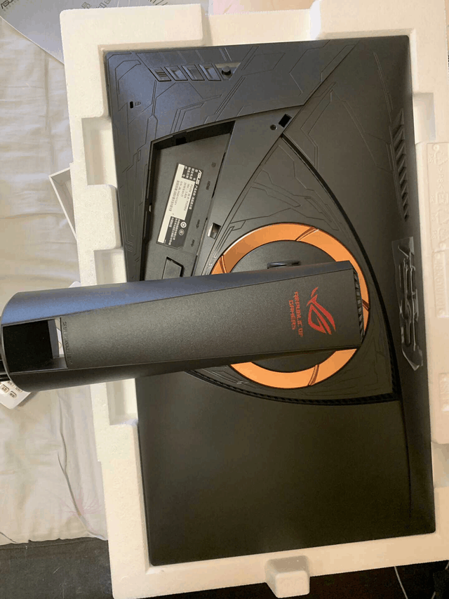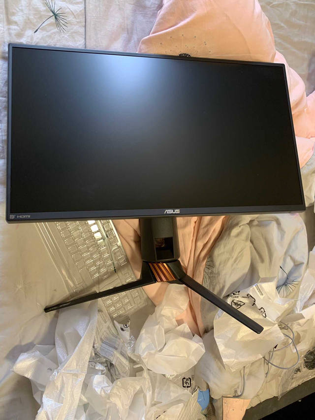 本来给朋友带主板的,结果自己买了台PG258Q回来,这台屏幕尺寸是24.5英寸,包装顶面印制有一系列功能图标,简单明了地展示了产品的特性和功能,其中240Hz刷新率、1ms极速响应和G-SYNC技术的搭配已经是目前电竞显示器最不错的配置,除此之外最右下角的NVIDIA 3D VISION图标还说明了它支持3D显示,可以搭配NVIDIA 3D眼镜体验3D游戏或视频,华硕ROG PG258Q电竞显示器的背部设计有DP、HDMI、USB、固件刷新接口、电源接口和3.5mm音频接口,并且设计了线材卡槽,方便整理线材。使用起来显示效果是非常棒,很讨好眼睛,不愧是240HZ的刷新率,和我之前用过的60HZ显示器一比较,高下立现。