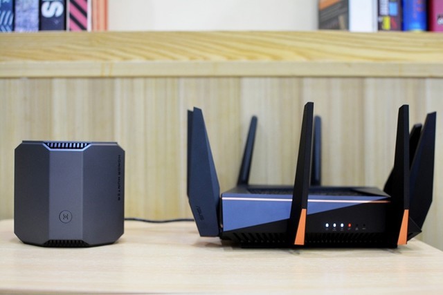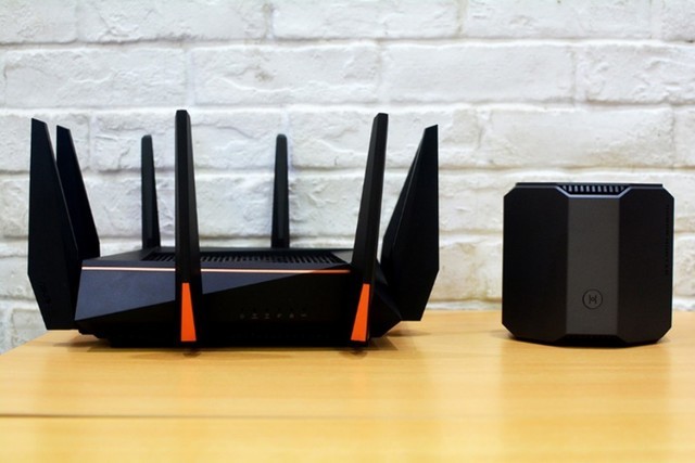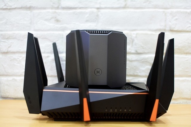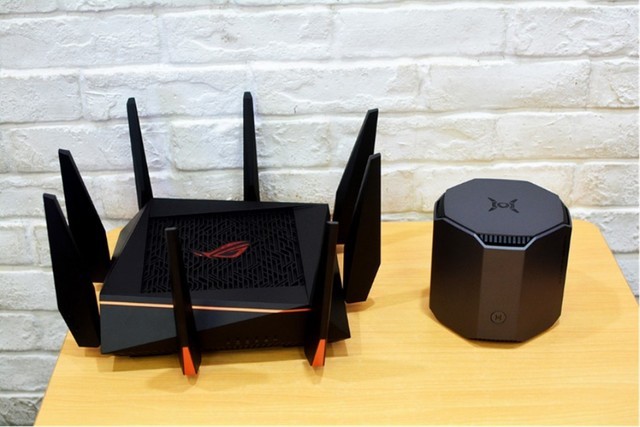 华硕GT-AC5300 ROG路由则采用了八爪鱼天线,单独看是帅气的,但体积比较大,摆放起来比较碍事,而且大多时候无法与环境相处融洽,井井有条的房间是需要同样整齐的成员构成。相比较而言,荣耀猎人游戏路由更加简洁好看、节省空间,当然喜好还是因人而异的。