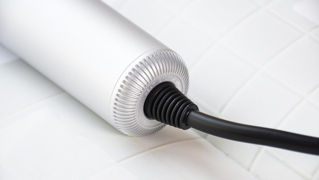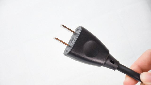 手柄底部看似出风格栅的纹路实际上仅作装饰作用,电源线缆从手柄底部延伸出来,长度大约为1.8米左右。线材本身比较粗,采用国标两脚插头。