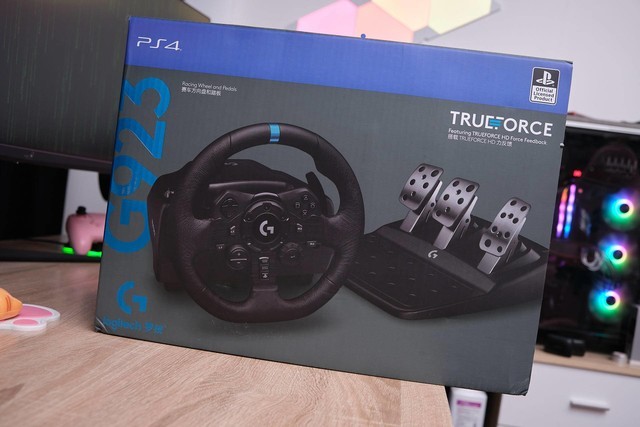 这个方形盘是可以同时兼容PC和PS4的,相信未来PS5也是可以完美兼容的,相比G29,G923最大的不同就是加入了全新的TRUEFORCE力反馈系统,可以更真实的体验过弯、路面变化、碰撞等物理反馈,我最喜欢的地方莫过于方向盘模拟的出的引擎轰鸣,真实感极强,一脚拉满带来的血脉喷张,真的是让人欲罢不能。这些都是使用手柄或是键盘无法体验到的。