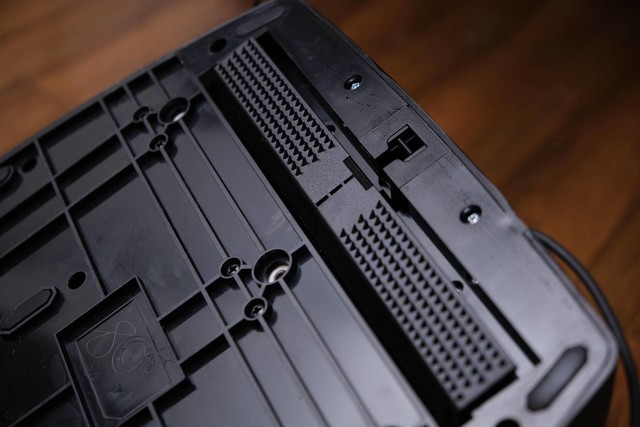 G923踏板的底部配备了8块防滑橡胶垫,实测放在地板上防滑效果还不错。顶部配有可收缩的倒刺,非常适合搭配地毯使用的用户,可以进一步增强稳定性,实测倒刺配上地毯之后,刹车就可以踩到底了。