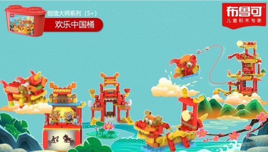 最近,一则新春限定款的积木桶1秒售罄15000套的信息引起了大家的广泛关注。它是布鲁可集团在春节期间,与天猫母婴亲子及Alibaba Desigan共创的新春积木礼盒。这款以中国风为亮点的积木桶内有298颗积木颗粒,能百变出春节“闹新春”、端午“赛龙舟”、中秋“游月宫” 等等中国传统节日主题。小朋友可以通过主场景及百变的搭建,更深入了解国家的传统文化。