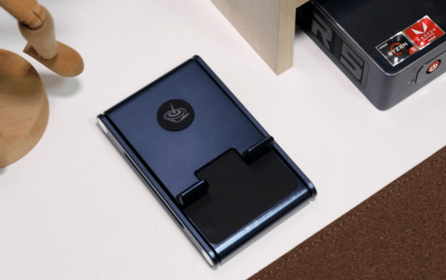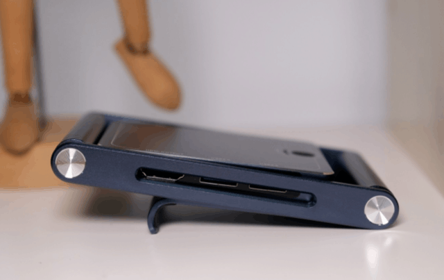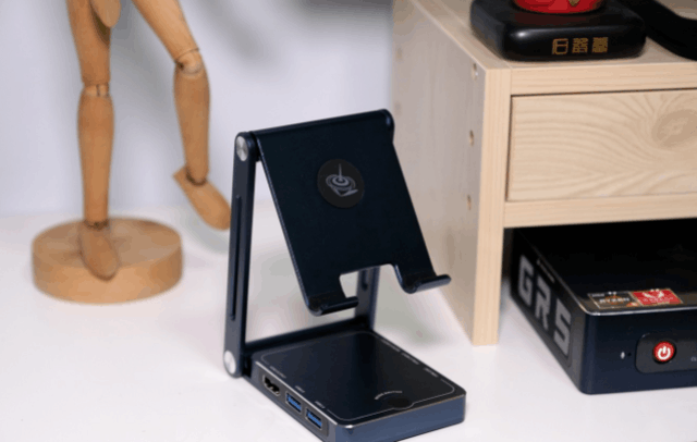别看Beelink Expand X扩展坞块头不大,但是展开之后转轴的阻尼比较大,支架的角度会牢牢地稳住而且可以随心调整。不只是放手机,就是放平板电脑,也是没有问题的。